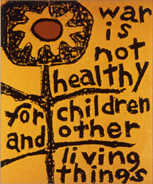Mother for Peace of a flower around which is scrawled the phrase “War