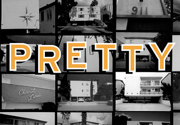 It was the architect Francis Ventre, I think, who coined the term “dingbats” for them, but they all began life as variations on the modernist stucco box that had effectively replaced, through economic necessity and post war inventiveness, the Spanish colonial revival style that had dominated up until then. Structurally, that’s what they consist of: generic boxes on three sides with all of the attention paid to the street facades. Sets. All surface and no depth. How apt is that for LA, I hear you scream. But how inventive those facades turn out to be. Some display admirable restraint — almost austere in some ways — while most reflect the exuberant optimism and confidence that were sweeping the country, and especially California, in the period from 1945 through to the early sixties. They seem to complement the consumer objects of the day, much more closely than at other moments in history, with their vibrant, playful colors, organic-shaped details, and graphic patterns and textures afforded by the use of stucco. And at some point in the early fifties the garage doors disappeared from them, lightening the overall effect and making the carport and automobiles an integral part of the design. Was this because car design was going through its own creatively fertile period too? Or, more likely, owing to bureaucratic zoning restrictions? Not wishing to be outdone by their automobile counterparts, the stucco box designers adorned their buildings with an array of details. Many of them have names, proudly displayed in script type on the facade. Some appear to be directly named after a loved one, like Debby Den, while many others evoke glamorous destinations, often Polynesian. But where do you aspire to go when you already live in Paradise, albeit Paradise with a lobotomy? In many cases the street numbers are audaciously out of proportion with the rest of the facade and, of course, to a typographer, these are favorites of mine. And perhaps most recognizable of all are the innumerable versions of dingbat light fixtures that, at night, make the buildings twinkle and glow.